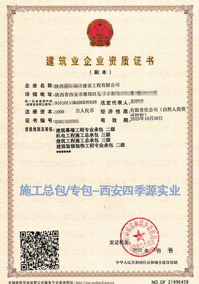 • 西安四季源實業專業代辦建筑資質,升級 增項 延期